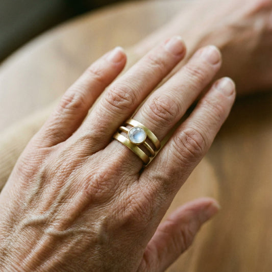 Anillo Vintage en Oro con Incrustaciones de Piedra de Luna