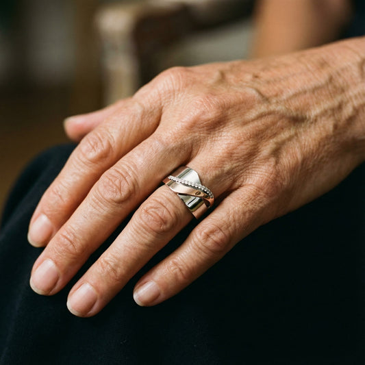 Anillo con incrustaciones doradas brillantes