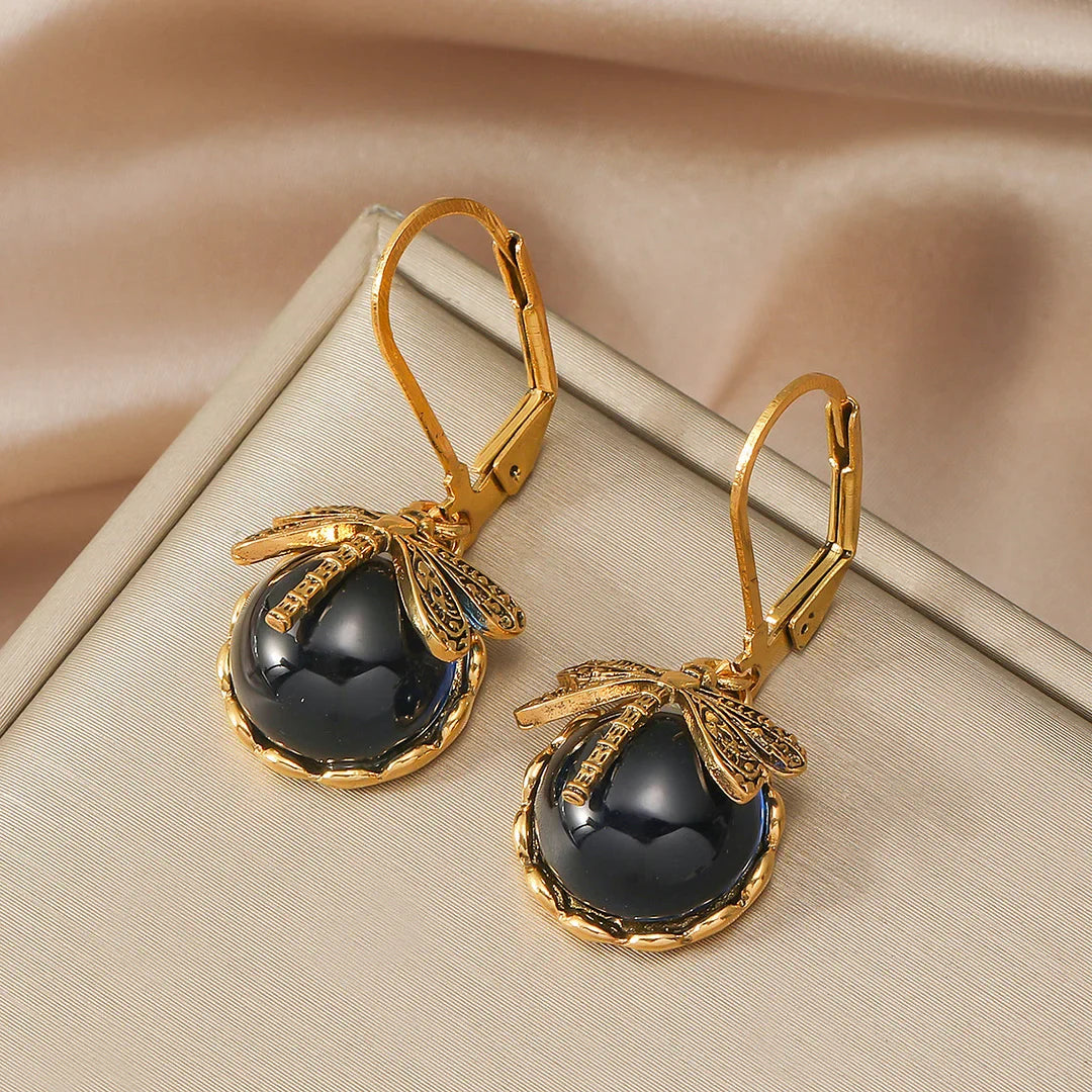 Pendientes Esféricos de Libélula en Plata Antigua