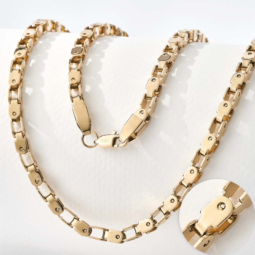 Fundimos Oro 18k sobre titanio, forjando un blindaje con el color, brillo y textura del Oro Italiano. Su durabilidad es aprobada en laboratorio, por esto, nuestra garantía es de por vida y certificada.