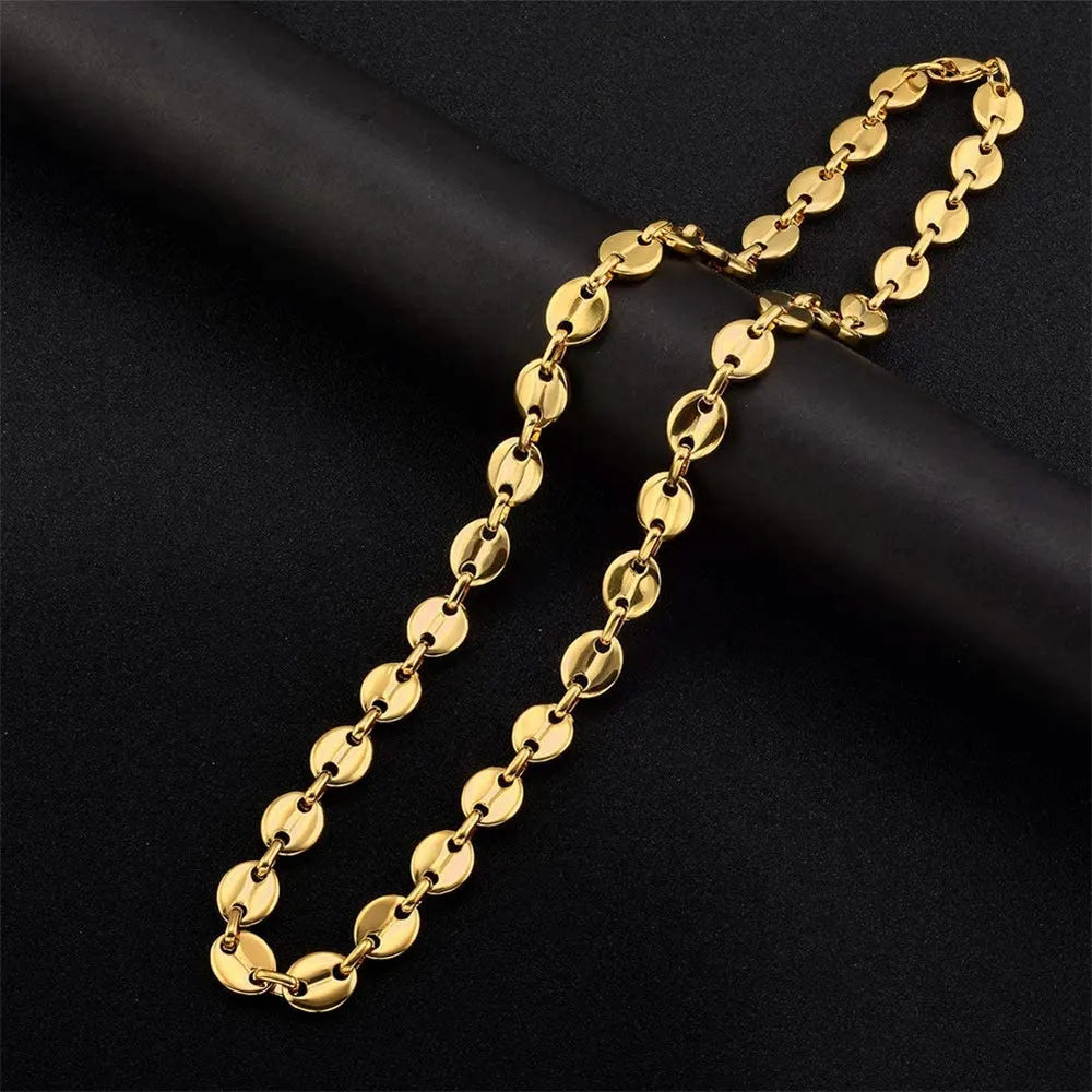 Este collar de acero inoxidable con granos de café es una pieza única y elegante tanto para hombre como para mujer. Su sutil diseño simboliza energía, pasión y calidez, lo que lo convierte en un accesorio con un significado especial.